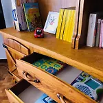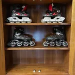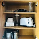 Daire, kendi yemeklerinizi hazırlayabileceğiniz mikrodalga fırın, bulaşık makinesi, çamaşır makinesi ve televizyon, küçük mutfak, kanepe gibi olanaklara sahip olan odalar sunmaktadır. Banyoda saç kurutma makinesi, havlular, bide, banyo küveti bulunmaktadır.